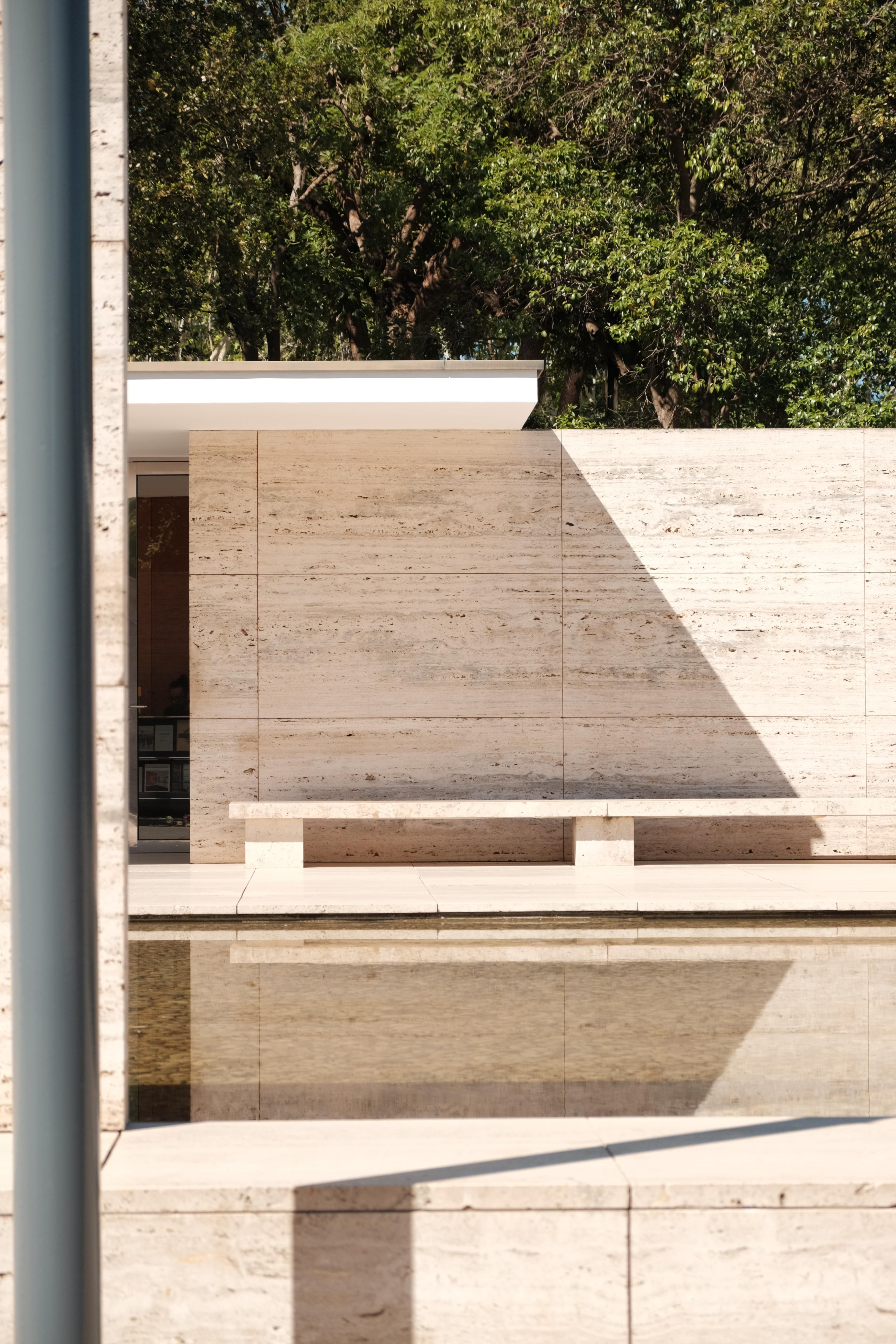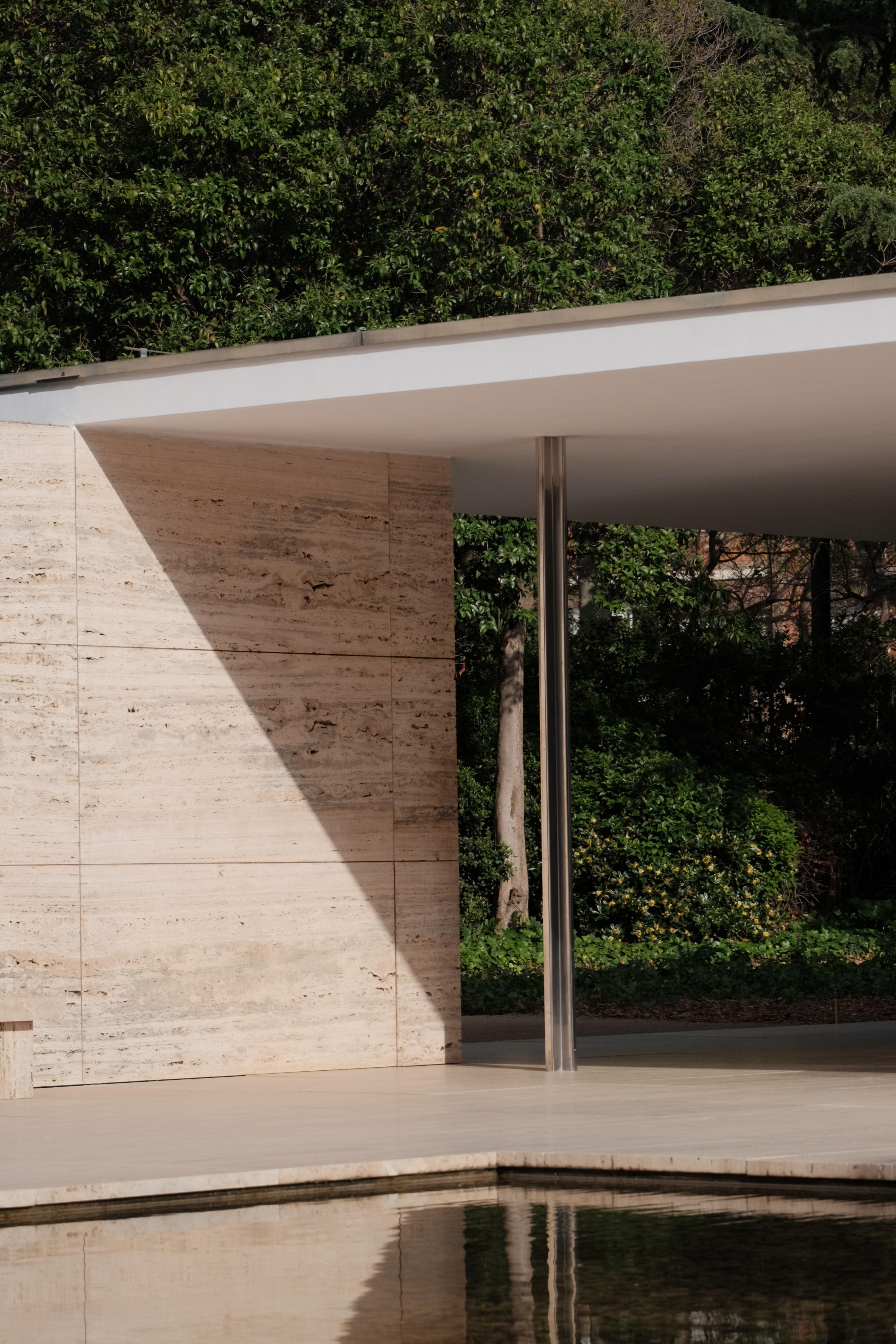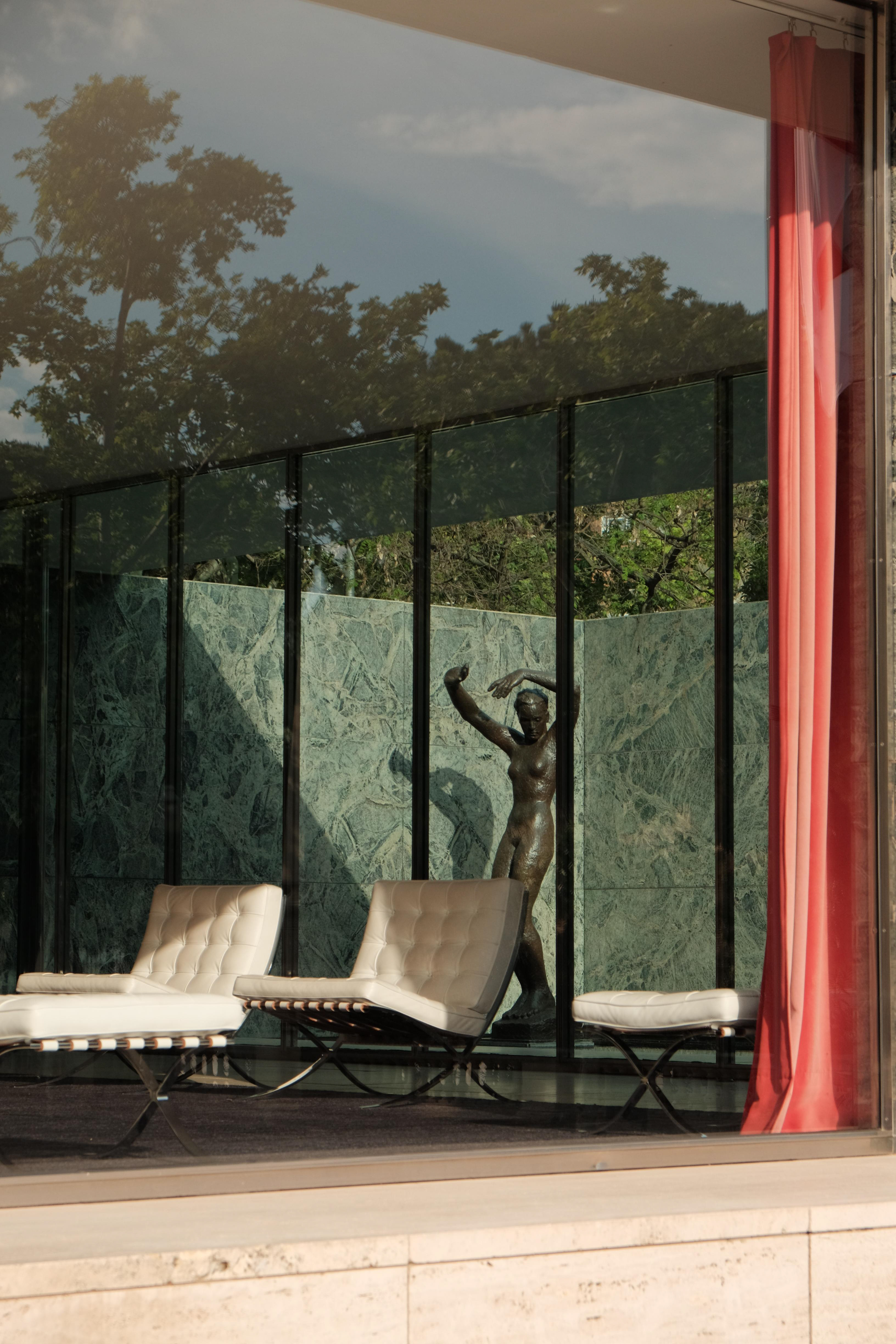 Der Morgen im Barcelona-Pavillon war ein getöntes Gipsmodell, das auf dem Rücktransport von Barcelona nach Berlin zerstört wurde.